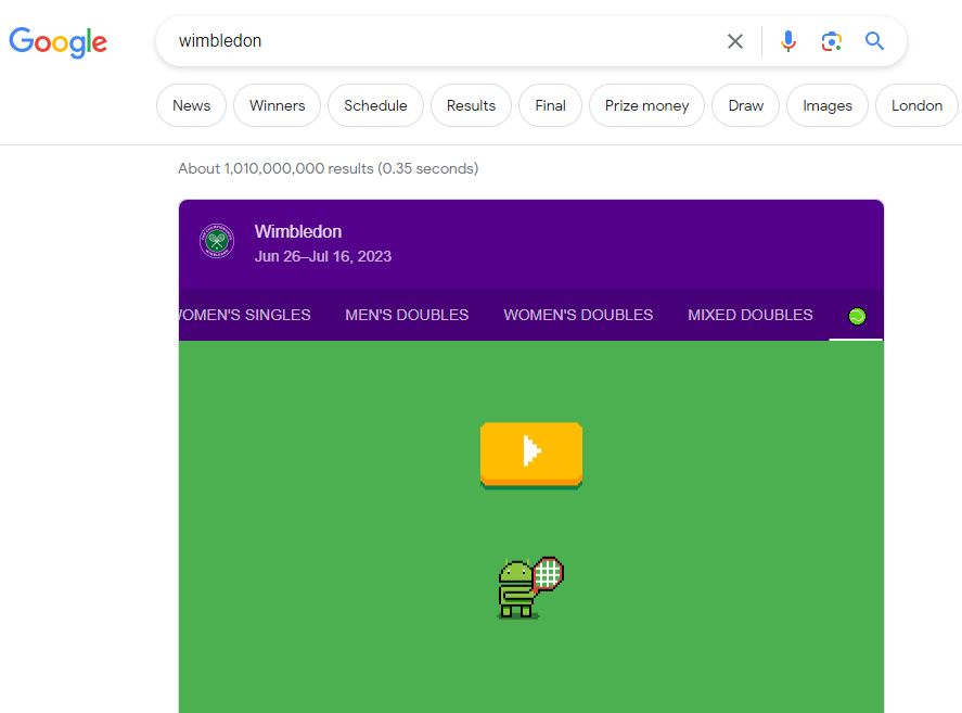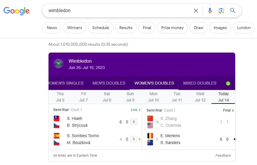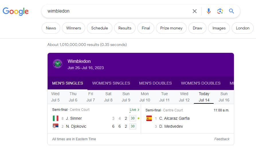 Now, you can literally just type the word “Wimbledon” (when the tournament is on) into Google and you’ll get something that looks like this: